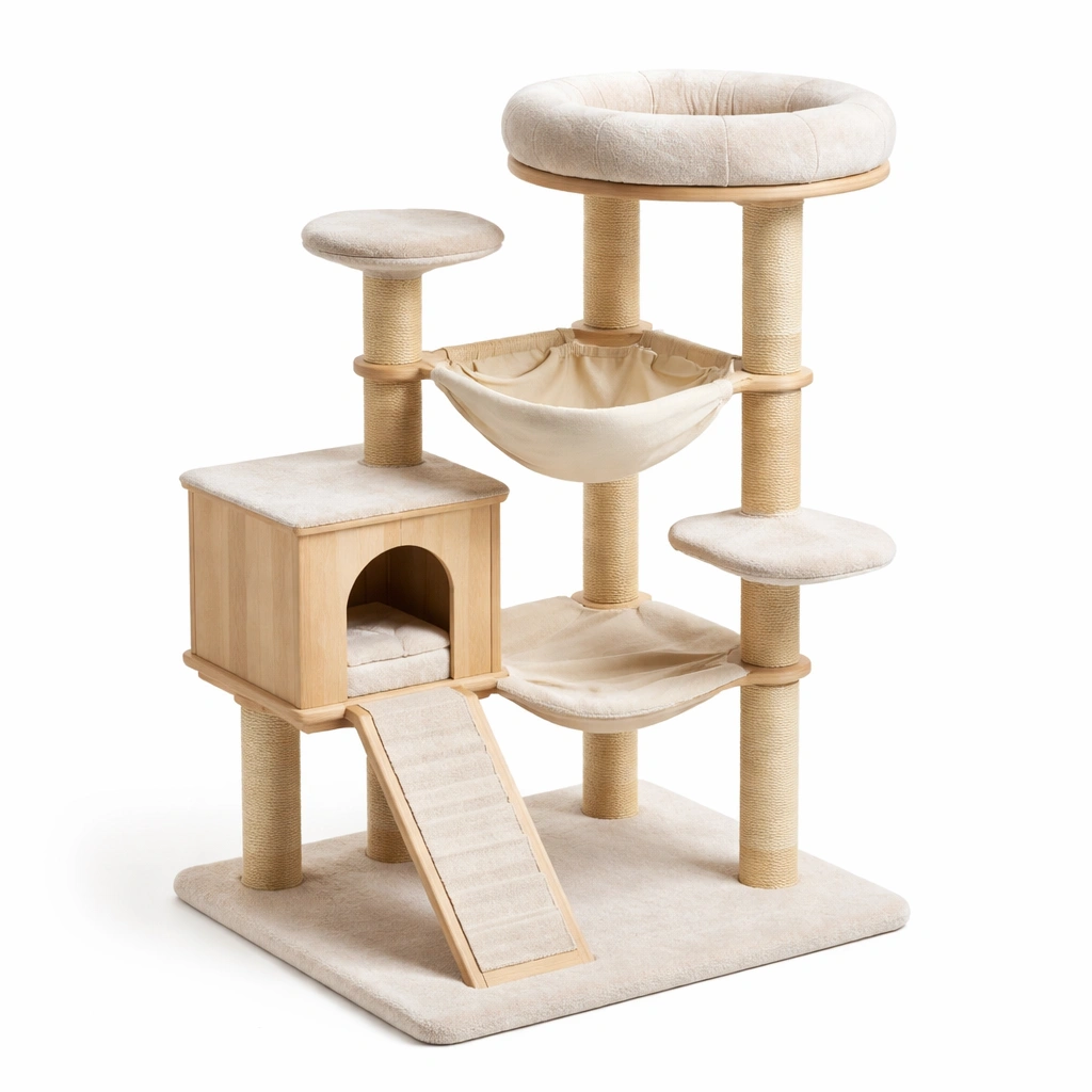 - Katzenhaus, Kletterplattform, Hängematte, Kratzsäulen